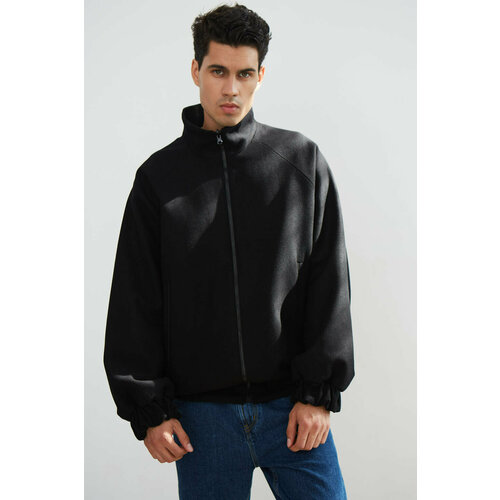 Черный, шерсть, без воротника, длинные рукава, застежка на молнии спереди, два прорезных кармана по бокам и карман с молнией на рукаве.
