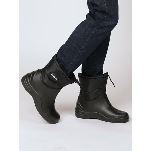 В гардеробе любой практичной девушки должны быть дутые резиновые сапожки! Дутики универсальные черного цвета отлично подойдут для отдыха на природе. Если Вы собираетесь в лес на шашлыки, то можно не бояться укуса клеща. Сапоги на резиновой подошве не пропускают насекомых. Ботинки на плоской подошве удобно носить на прогулку с любимой собакой и в лес за грибами. Теплые сапоги на липучке плотно прилегают к ноге, благодаря чему отлично смотрятся на стройных щиколотках. Что бы обеспечить комфортом в ненастную погоду просто необходимы стильные ботиночки дутышы. Текстильные ботинки с непромокаемой подошвой порадуют любительницу долгих пеших прогулок. Сапоги на утяжке отлично впишутся в повседневный наряд молодых мамочек. Ведь в обуви для активного отдыха комфортно гулять с ребенком. Походная обувь пригодится в долгом путешествии. Утягивающиеся дутики лучший подарок для любимой мамы на день рождение. Для того что бы проявить заботу о любимой девушке на 14 февраля, необходимо укутать ее ножки в теплые демисезонные ботинки. Для бабушки на дачу и в огород просто необходимо приобрести пару замечательных резиновых сапог на липучке. Галоша обуви выполнена из Эва материала. Эва сапоги невероятно лёгкие удобные и мягкие! Износостойкая женская обувь подходит для Европейской зимы и осеннего периода. Полуботиночки для девочек практичные в носке и не требуют особого ухода. Достаточно протереть женскую осенью обувь влажной тряпочкой или салфеткой и она как новая! Сапожки с искусственным мехом не отличаются по комфорту от натурального. Полусапоги практичные утеплённые резиновые из ЭВА материала удерживают внутри тепло и не пропускают влагу. Укороченные ботильоны-хит сезона весна-осень 2023. Влагоотталкивающие сапоги с утеплителем станут незаменимой парой обуви для любой женщины.