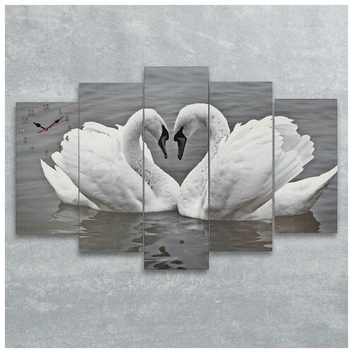 Сюжет часы настенные модульные «пара лебедей. хром», 80 × 140 см