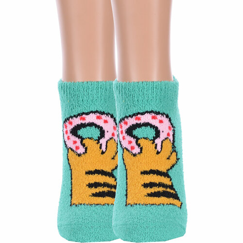 Комплект женских носков из 2 пар, межсезонные или зимние, короткие, цвет зеленый, теплые, с принтом, с нескользящей стопой, махровые, состав: 97% полиэстер, 3% спандекс, арт. 2-Нжмпу2015-01. Производитель "Китай, страна бренда - Россия" под брендом "Hobby line".
