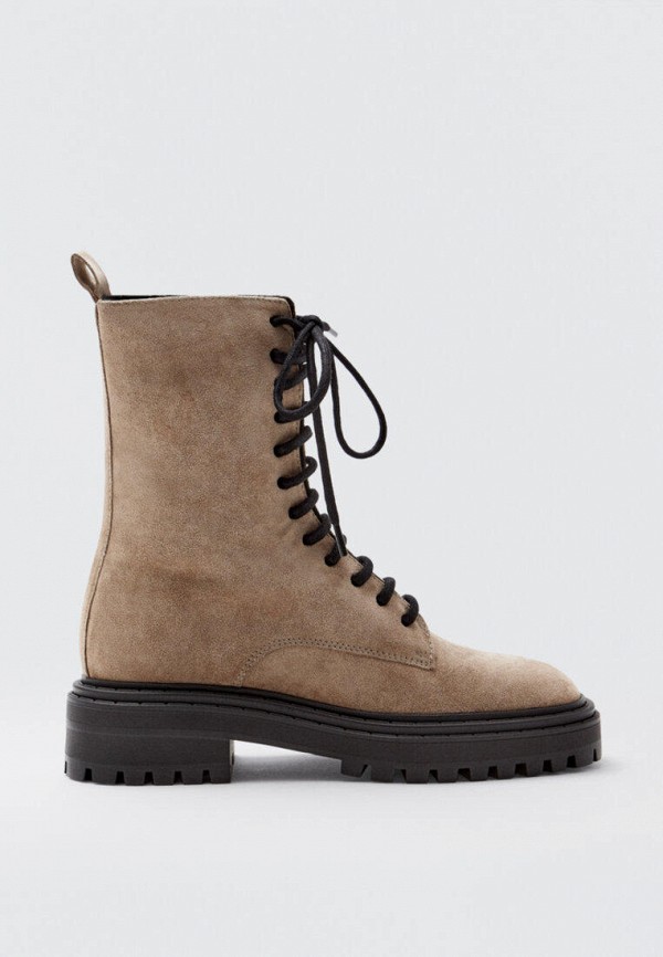 Ботинки Massimo Dutti. Цвет: бежевый. Материал: натуральная замша. Сезон: Осень-зима 2021/2022.