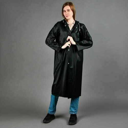 Дождевик-плащ "Не плащ по пустякам", размер 42-48, цвет чёрный для взрослого стильная альтернатива громоздким зонтам туристическим и одноразовым полиэтиленовым плащам. Плащ ветровка из непромокаемой ткани выглядит, как верхняя одежда, при этом защищает от влаги, не пропускает ее. Дождевик женский/мужской с капюшоном застегивается на кнопки и имеет затяжки на капюшоне. Его можно носить на работу, учебу, брать в дальние поездки и, конечно же, в походы и туры, на рыбалку, на пикники, на дачу. Универсальный дождевик плащ будет всегда с вами и защитит от осадков. Дождевик женский/мужской с капюшоном достаточно компактный и не займет много места в дамской сумочке. Плотность 12 г/м3