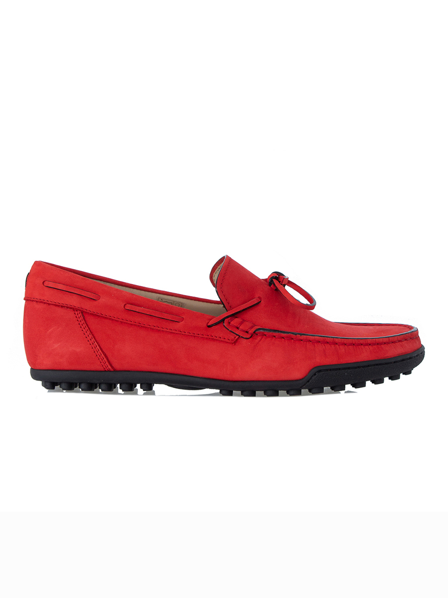 В весенне-летнюю коллекцию марки, основанной Джоном Ричардсоном Барреттом, вошли черные мокасины на подошве с широким протектором, напоминающим рисунок колес автомобиля. Чтобы пара была особенно гибкой и легкой, ее сплели из тонких полос мягкой фактурной кожи. Матовую и серебристые накладки на заднике и перемычке декорировали логотипом бренда.