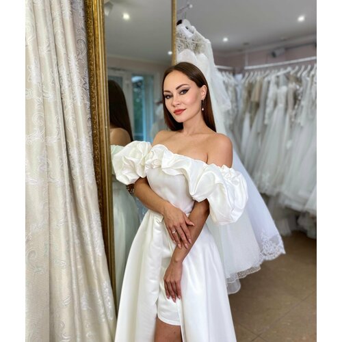 Свадебное платье трансформер в стиле минимализм. Юбка съемная , корсетное, сзади на шнуровке. Атласное, не тянется.