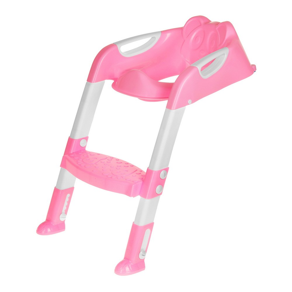 Сиденье на унитаз со ступенькой - панда, с ручками, розовый
