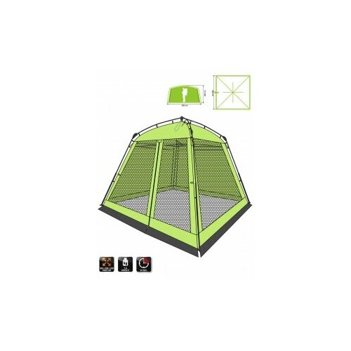 <br /><ul><li>Установка за 50 секунд;<br /></li></ul><br /><ul><li>Большой удобный вход;<br /></li></ul><br /><ul><li>Сетчатые окна дублированы водонепроницаемой тканью</li></ul><br /><br />Размеры:<br /> <br /><ul><li>460х440х230 см;</li></ul><br /><ul><li>Вес 11 кг</li></ul><br /><br /><p>* Внимание! Цвет оттенка шатра может отличаться от представленного на фотографии.</p><br /><p>** Стойки для козырька в комплект не входят.</p>