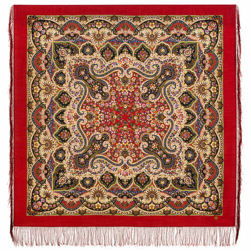 Павловопосадский платок из уплотненной шерстяной ткани с шелковой бахромой. Рисунок 1995 "В парке «Чаир", вид 13, размер 148х148см. Художник: Зубрицкий Виктор. Изготовитель ОАО Павловопосадская платочная мануфактура. Шерстяной платок-незаменимый аксессуар в гардеробе. Модный аксессуар можно носить вместо головного убора, накидывать на плечи, повязывать как шарф. Платок можно носить и с весны до осени в качестве шарфа, шали или палантина. Надеть поверх пальто, плаща, куртки, пуховика, шубки и любой образ станет более ярким и уютным. Ты можешь превратить его в шарф, свернув в полоску и завязав на шее. Можешь оставить длинные концы свободными или закрутить их, завязав декоративным узлом. Можно сложить, чтобы получился треугольник и повязать на шею на манер ковбоев из вестернов. Павлопосадский платок отличный подарок маме, бабушке, жене, дочке, коллеге, любимой женщине на день Рождения, Новый год или любой другой подходящий праздник. Куда бы в нем не пошли, на работу, на праздник, на прогулку, в храм или театр вы всегда будете выглядеть роскошно, прекрасно и ярко. Наши Павловопосадские платки и шали славятся и известны по всему миру!