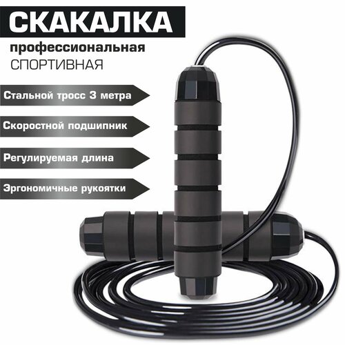 Профессиональная скакалка для фитнеса, бокса и функционального тренинга с подшипником - это незаменимый аксессуар для тех, кто хочет поддерживать себя в форме и заниматься спортом в домашних условиях и залахСкакалка оснащена подшипником, что обеспечивает плавное и мягкое движение, а также предотвращает быстрый износ. Это делает тренировку более комфортной и эффективной.Стальной трос в обмотке ПВХ длиной 3 метра очень надежный и долговечный, простая и быстрая регулировки длины обеспечит оптимальный размер в соотвествии с вашим ростомЭргономичные рукоятки выполнены из EVA материала обеспечивают приятный надежный хватСкакалка подходит для занятий фитнесом, боксом, кроссфитом и другими видами спорта. Она помогает развить выносливость, улучшить координацию движений и укрепить мышцы всего тела.Скакалка изготовлена из качественных материалов, что гарантирует долгий срок службы.С помощью скакалки для фитнеса и бокса с подшипником вы сможете заниматься спортом в любое время и в любом месте. Это отличный способ поддерживать себя в форме и разнообразить свои тренировки.