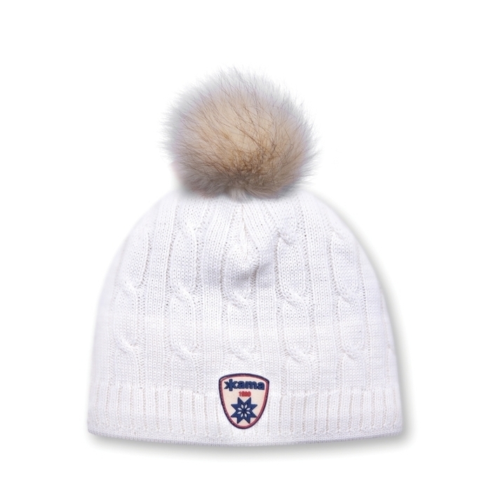 Стильная шапка с меховым помпоном. Оригинальный орнамент отлично дополнит ваш гардероб.