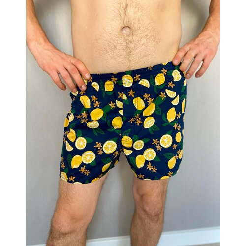 Трусы с рисунком лимоны, желтые на фоне темно-синего цвета. Принт - Лимоны. Качественное и стильное нижнее бельё для мужчин, которые выбирают комфорт! Трусы мужские семейные изготовлены из натурального хлопка. Дышащая, мягкая ткань приятна для кожи и не образует парникового эффекта, как синтетические аналоги. Эти свободные трусы совершенно не чувствуются на теле, а также не выделяются под одеждой, благодаря плоским швам. На пробежку или в спортивный зал, на романтическое свидание или для дома, в поездку или на фитнес - это универсальное мужское бельё! Резинка на трусах мягкая и прочная, она не давит и не перекручивается, так как прострочена вместе с тканью. Даже во время активных тренировок или домашних дел, они будут на месте. Эти трусы с высокой посадкой более удобны, чем слипы или плавки. Идеальный вариант для тех, кто любит боксеры, но хочет большей свободы. Мужские трусы подойдут для взрослого мужчины и мальчика, для обладателей фигуры больших размеров и небольшой комплекции. Хлопковые трусы шорты окрашены стойкими красителями, которые не вызывают аллергии и подходят людям с чувствительной кожей. Даже тёмные модели с принтом не полиняют и не выцветут со временем.